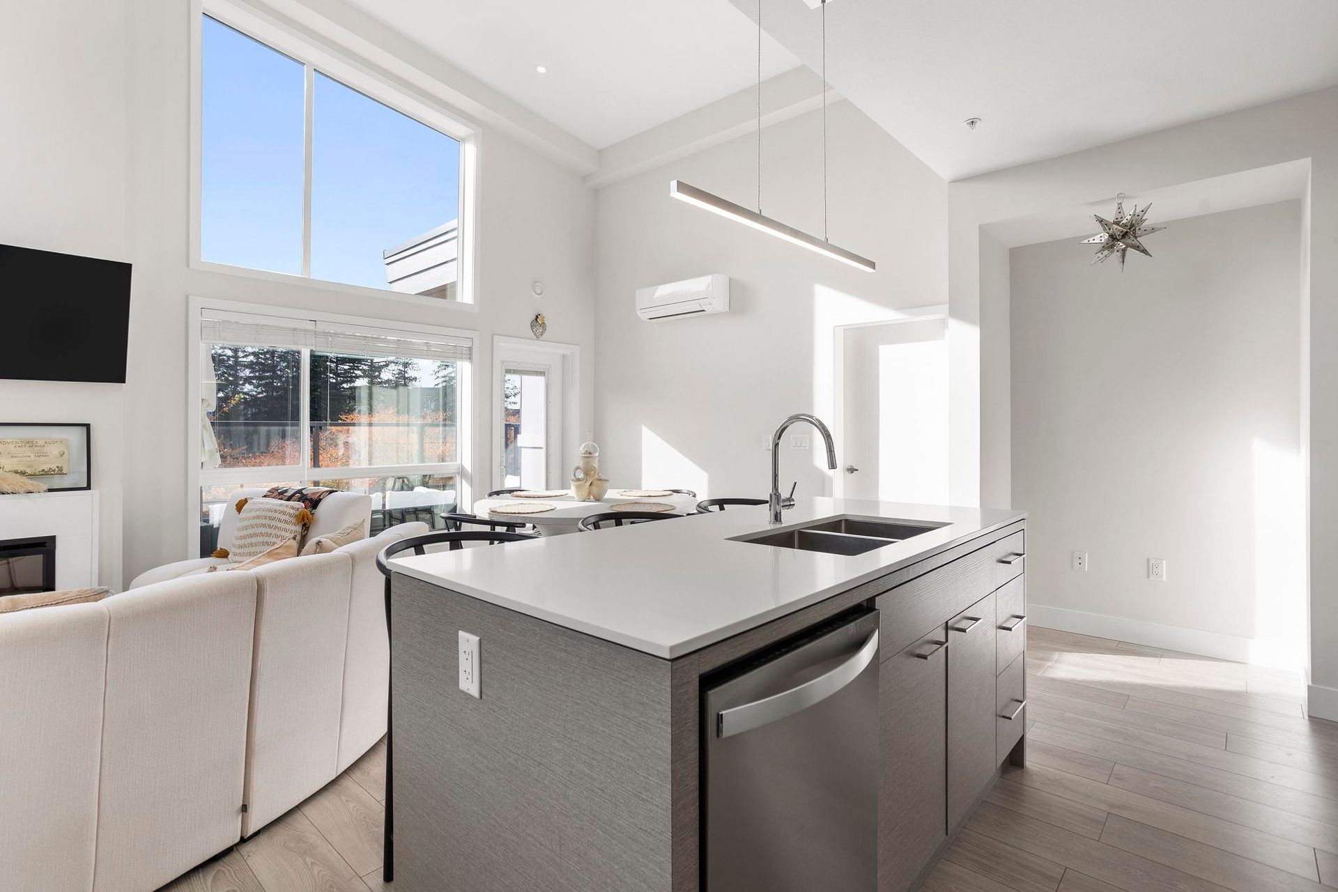 VIEWS Abound in this Stunning & Architecturally interesting 3 bedroom home located in the Master Planned Community of Garrison Crossing with Privacy & 360 Mountain Views + many Large Windows for an abundance of Natural Light. Gourmet Kitchen boasts Gorgeous Cabinets, Stone Counters, Big Island & S/S Appliances. Luxury Flooring flows through Dining Room & Living Room W/ Cozy Fireplace + Enjoy the Outdoors on your Large Deck perfect for alfresco dining or coffee in the morning. 2 Parking + 2 Storage Lockers. Everything walkable; Vedder River, Rotary Trail, Leisure Center, Shops, Pharmacy, Grocery, Coffee Shops, Restaurants, & Pilates Carefree lifestyle & only 5 min Drive to Top Notch Schools. PETS WELCOME.
